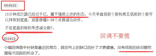 早盘开盘在科技股和军工领军下大盘发动攻势直接跳空向上,第一个5分钟成交额收阴小幅回调之后快速上攻站上开盘价,在15分钟收盘成交额1116亿,所以果断通知朋友们今天符合我们的进攻量,大于强势上攻的910亿,今天就是持股待涨,个股继续低吸。盘中虽然小幅回调我依旧提醒朋友们不要恐慌把握回调进场的每一次机会,如图: