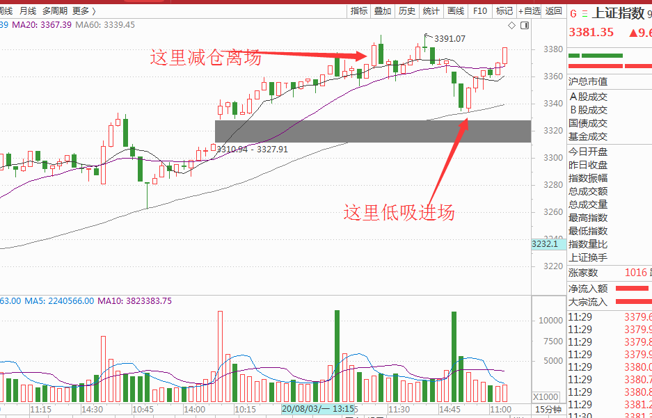 就在盘中我说了支撑点位开始大盘反攻,上涨板块快速有不足十家增加到了二十多家。这说明什么?我厉害吗?!!