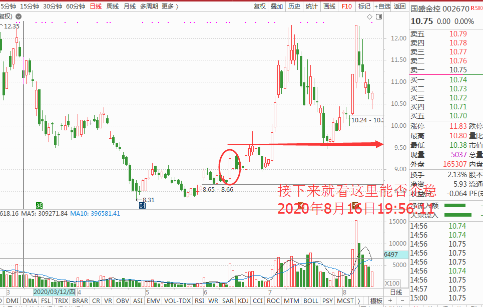这事说大不大说小不小,看技术图形来说在8月7日涨停板反复打开后震荡下破已经有些倪端了,无敌量的阳线是不能下破,下破就有鬼,所以无敌量参照是很有必要的,按照趋势原则总体没有走坏的迹象,需要看箭头位置能否企稳上攻,如图: