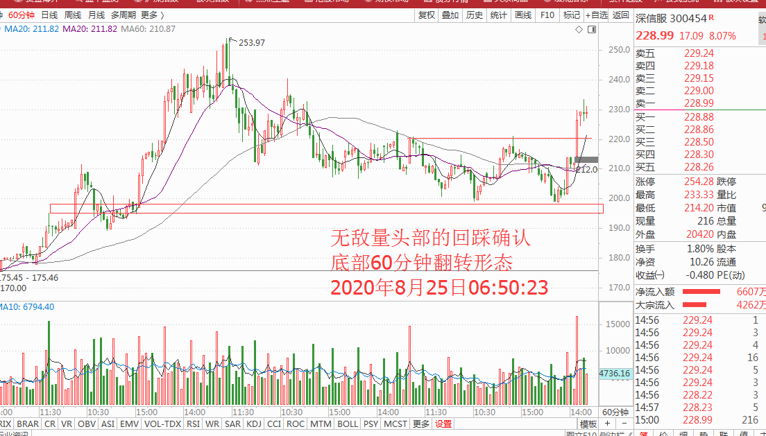 昨天加上新股超过10%涨幅的达到80只,我们从我们的条件筛选,300545深信服完成下方无敌量的回踩,30分钟出现转折点信号,可关注标K保护的机会,如图: