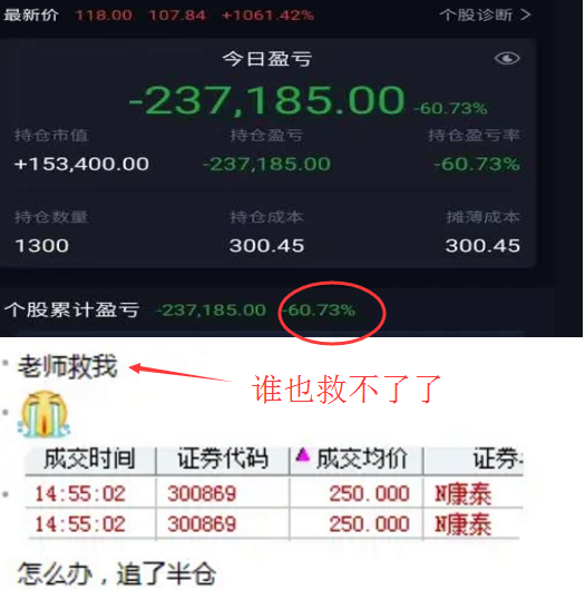昨天收盘朋友圈说的最多的就是康泰医药了,甚至有人晒出了持仓亏损29万的图,这图真假不清楚不过能在250元价位敢于追击的哥们也真的够250的了,当然如果强者恒强和小级别趋势的原则进场是没有错的,错就错在据说是满仓一把梭哈,那就怪不得市场专治这种不服的,相信如果是一把梭哈作为睡觉霸业一定是处于婴儿般的状态,怎么讲?睡眠安稳吗?不不不,是睡一会哭一会。