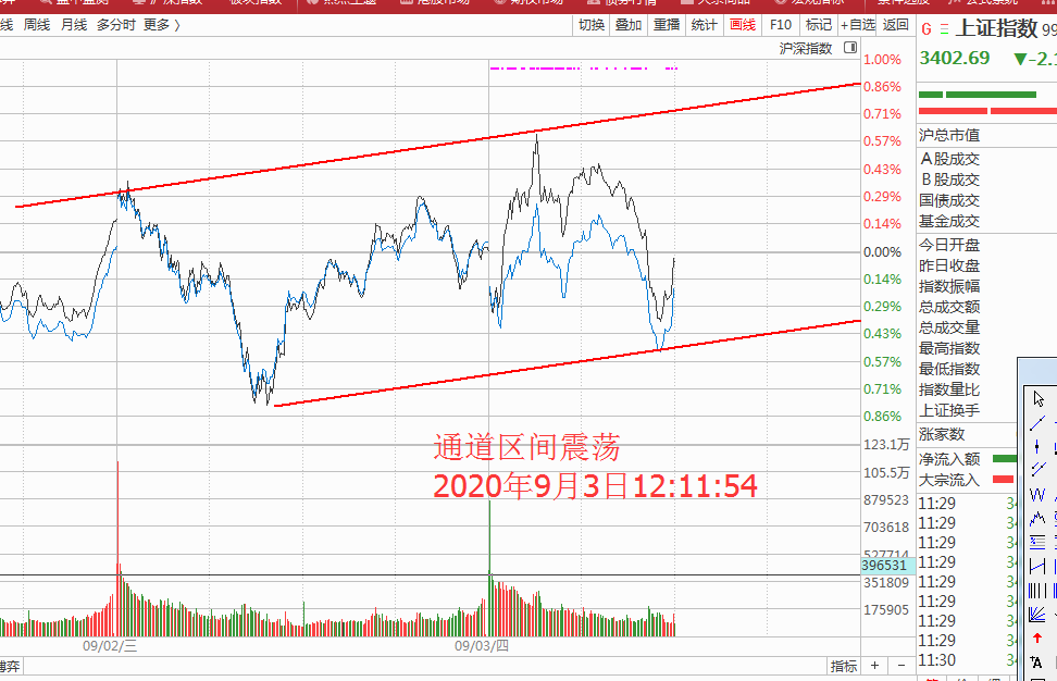 技术上形成了一个低点抬高的向上通道,通道太平,几乎就称为夹板区间了哈哈哈哈,如图:
