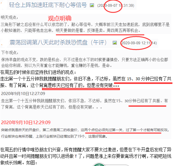 看看本周的周一开始给的观点建议吧,在周一第一天走出这种破位之后我就提示,本周没有可操作性,即便有也是在周四周五了,但事实上周四周五仅仅在周五下午开盘有了我们需要的信号,看看周一的收评吧,在9月9日个朋友们提示是要做好准备进场,但是有纪律来约束: