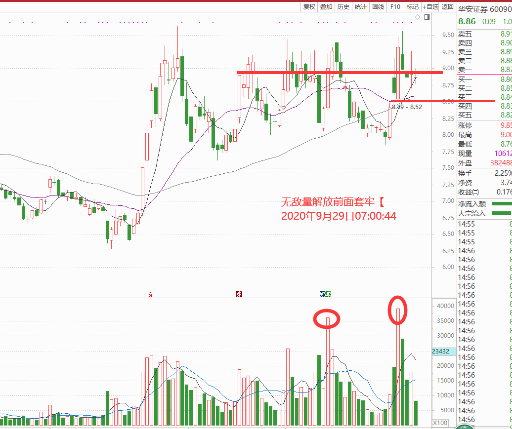 只要大盘反攻少不了券商,技术图形国联证券、国近证券都在水上,中信表现不错但是上周有个阴线比较难看,我毕竟喜欢华安证券,他基本是把前面的都解放了,上涨的时候都是放量,说明是惜售,如图: