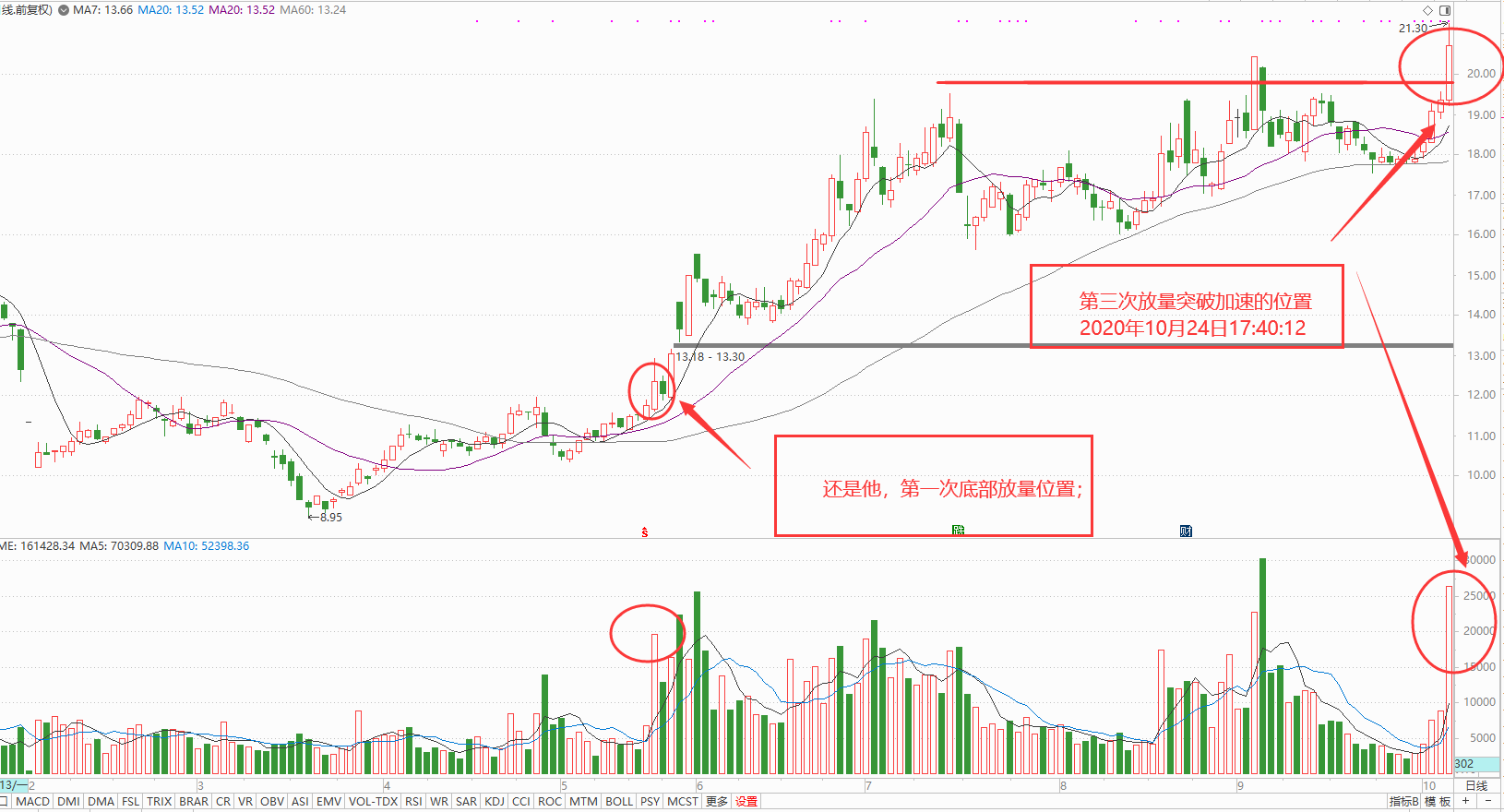 就是相当于一箭穿心的形态,底部放量突破是技术买入的一个比较重要的信号,可以在启动点上买入。