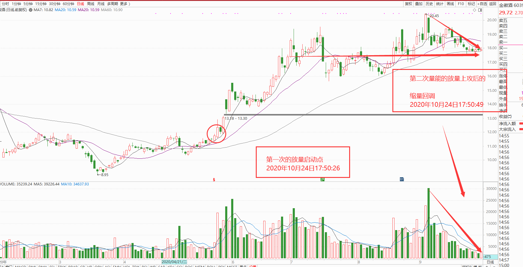 接下来第二个就是上涨中途放量上涨后缩量回调