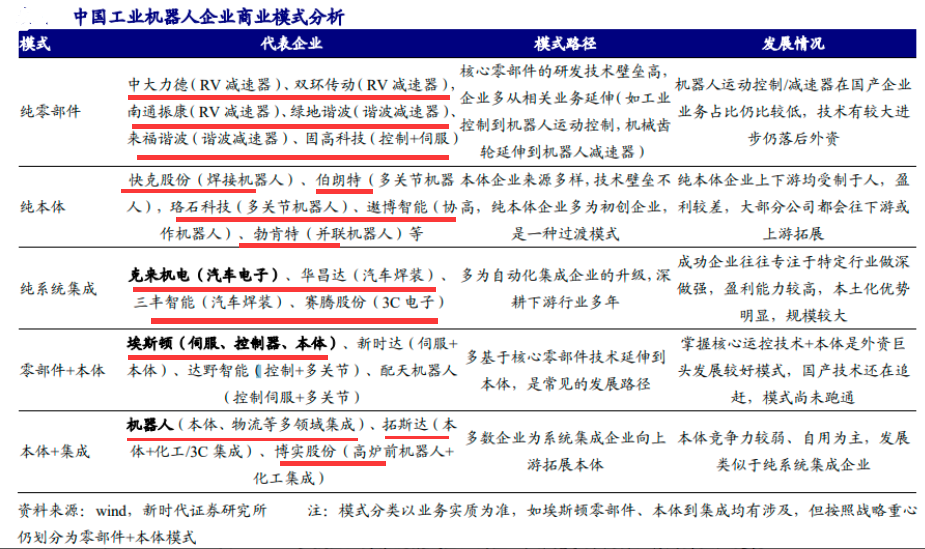 其他零部件环节相关个股包括:纯零部件供应商绿的谐波(688017)、汇川技术(300124)、中大力德(002896)、上海机电(600835)、双环传动(002472)等;零部件+本体供应商新时达(002527)等。