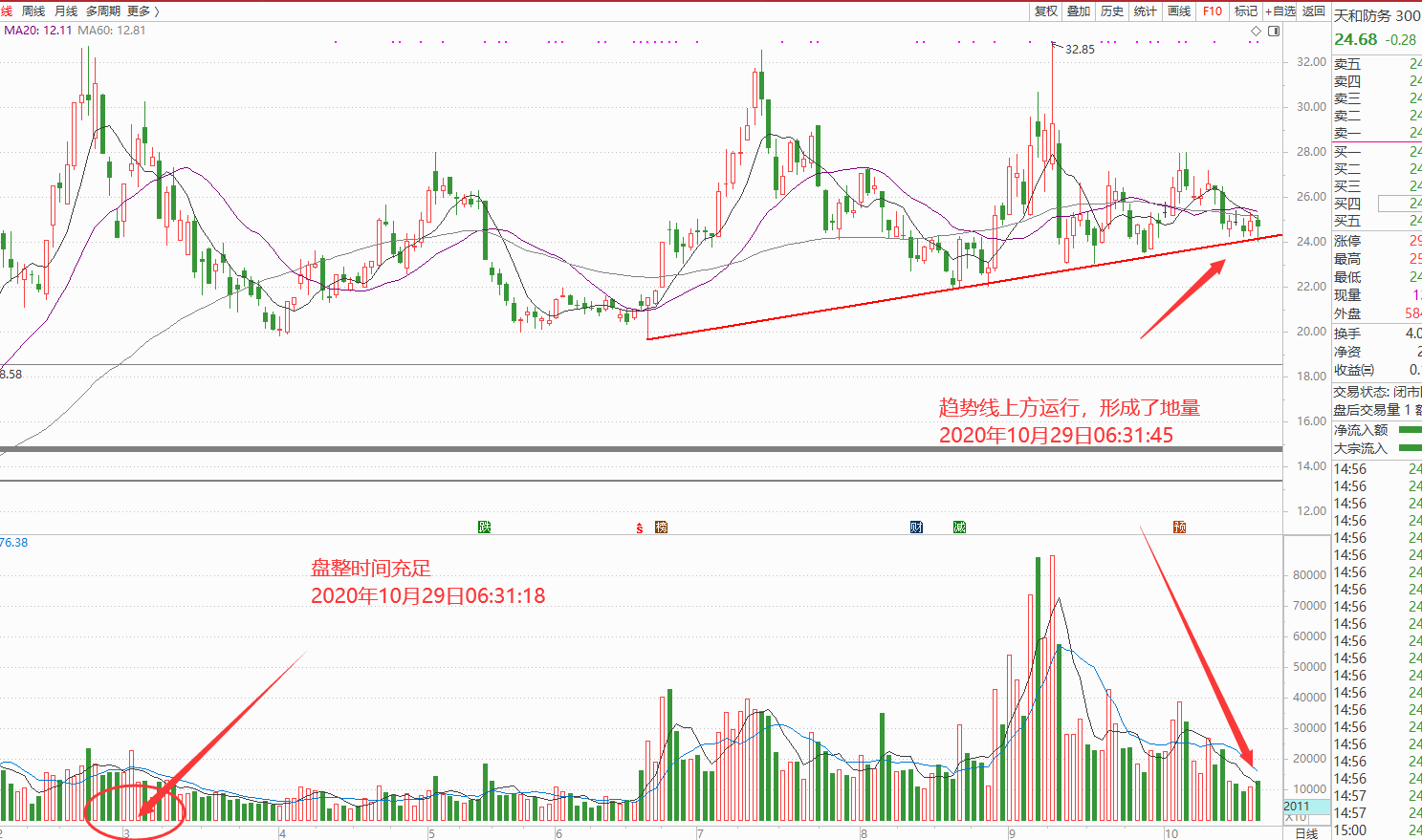 通信设备的300397天和防务业绩较好,从今年一月份至今盘整时充足,地量已经形成,可以重点关注,注意以前低做保护,毕竟也是大环境不好啊,如图: