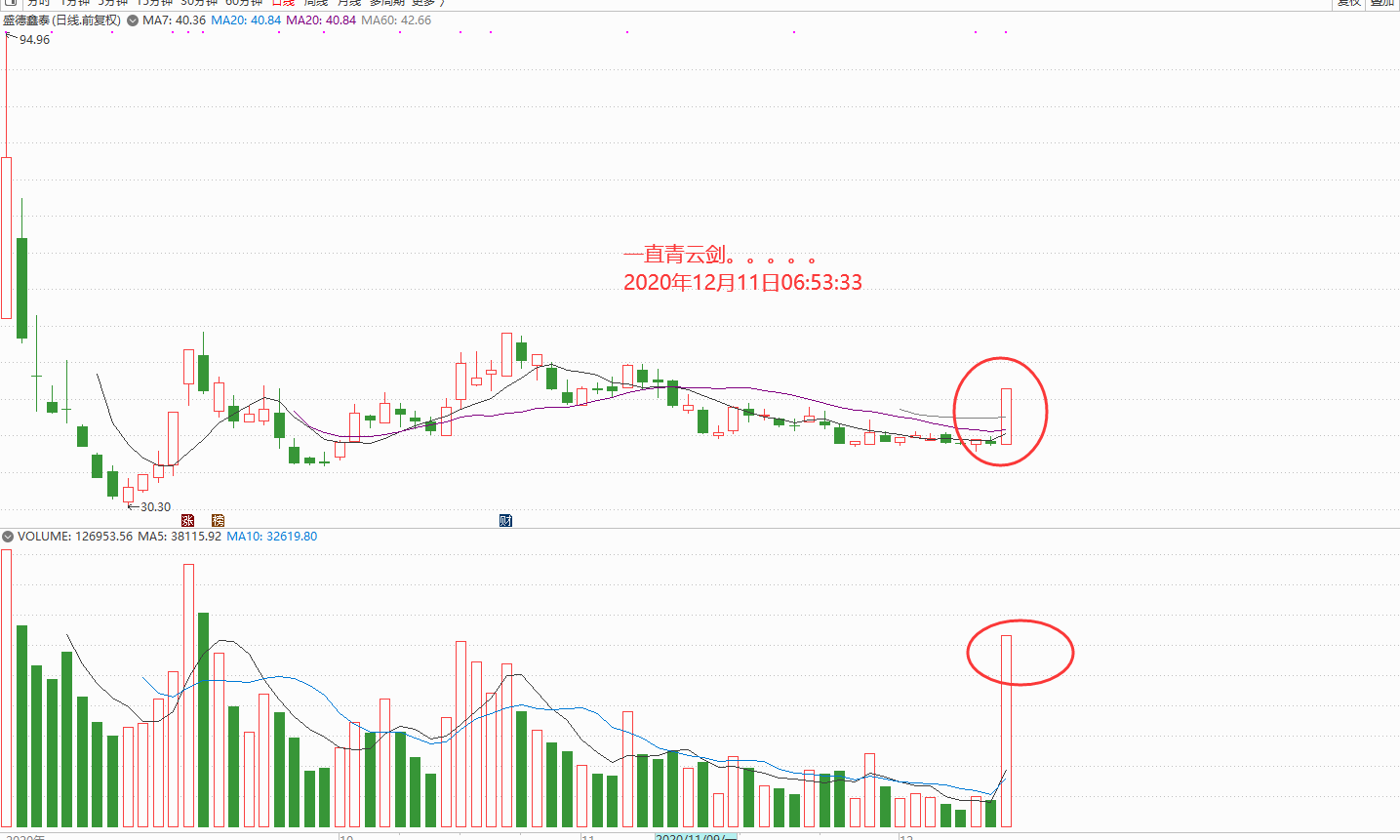 个股上钢铁板块昨天异动,其中的盛德鑫泰昨天走出放量印象的结构,这是明显的筑底信号,可以重点关注他震荡回调的机会,假定他就是盘整后三浪的启动点,保护位就是昨天的低点了,如图: