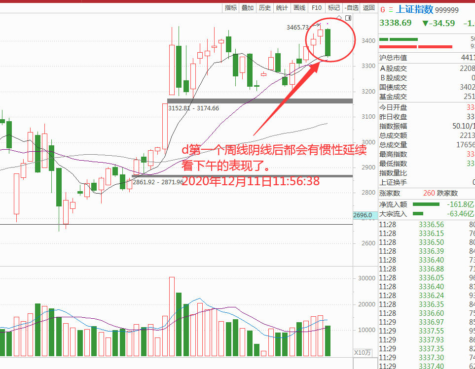 看来早盘文章的观点再次应验了,最担心的事情还是出现了,早盘文章观点就是担心收周线收出难看的信号,如果收出难看的信号基本上确定了12月收关前半个月要注定折腾,而且这个折腾会延续到月末了。