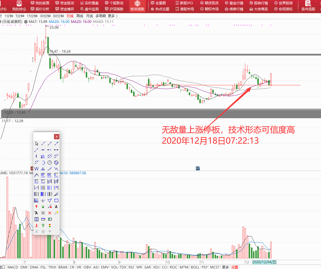 在12月11日周线收出阴线的时候又个加速的反击,当时我的观点就是:这里回踩了60均线,这里的中线、短线都是一个阶段性的支撑点位,更重要的是要配合我的无敌量变盘转折,只有放量站上最新的无敌量才能确认,而日线级别末端的突破也应验了那句话: