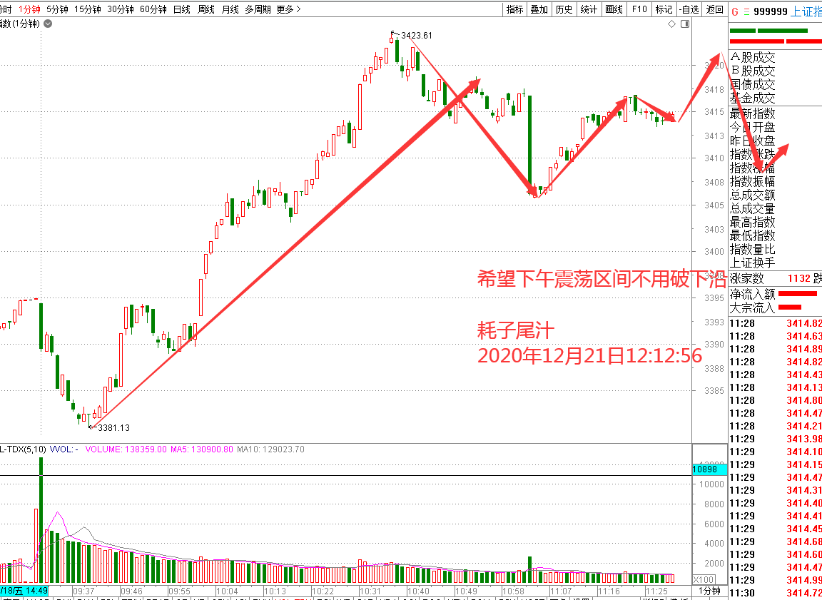 在周线收盘知道我已经差不多阐述了本周的观点,首先不管如何上周周线反弹收红了,距离年线还有两周,而周希望向下后上的节奏最好,背后的逻辑是这样才能蓄积能量,早盘文章也提出技术性观点:技术上下午也走出一波30分钟的快速回调,但是这个回调是没有量的,只是短线获利盘对周末消息的预期反应罢了。但是这个下跌的惯性会有所延续,早盘快速的下跌也验证了这个观点。
