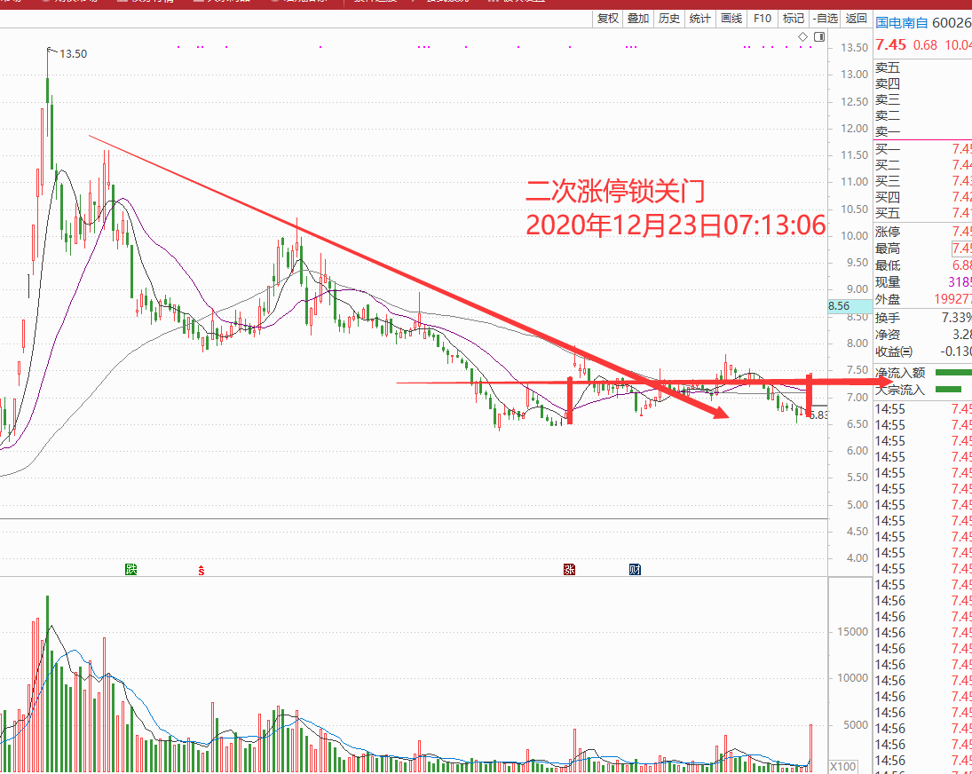 别人贪婪时我恐慌,别人恐怖是我贪婪,这个节骨眼上你追涨就错了,个股回调的时候就是绝佳的机会,跌了不买涨了你卖啥,违背了交易的本质,昨天一箭穿心底部形态的国电南自600268是完美形态,跌无可跌,二次底部涨停更可信,可以重点关注,如图: