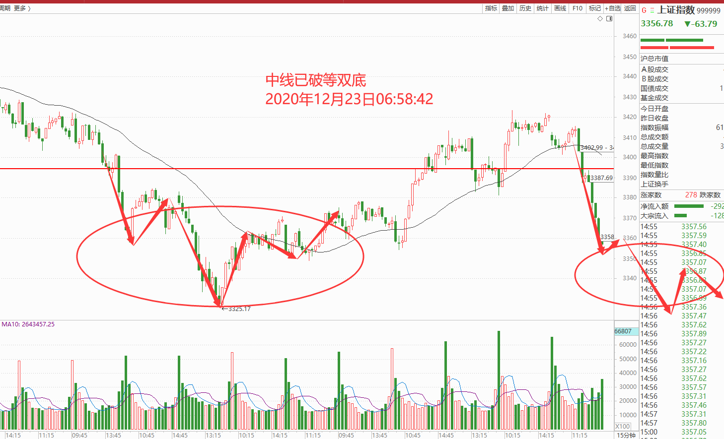 一般情况下中阴第二天就是对前面一天的进行修复,所以今天的反攻很难形成大气氛,依旧按照我们的小级别15分钟双底和无敌量进场。个股低吸也按照回调三五日的节奏。