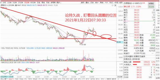 科技板块特别是科创板有部分公司将走出你无法想象的空间,半导体的688521芯原股份目前就处于一个左侧筑底的节点,30分钟已经转折,可以重点盯着他回头30分钟右肩的结构,如图: