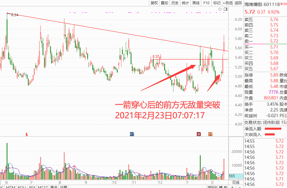 昨天化工类拍前的符合拐点信号的比较喜欢海南橡胶601118和齐翔腾达002408。海南橡胶601118是突破长期的震荡区间,齐翔腾达002408是吃掉了下跌的阴线巨量,如图:
