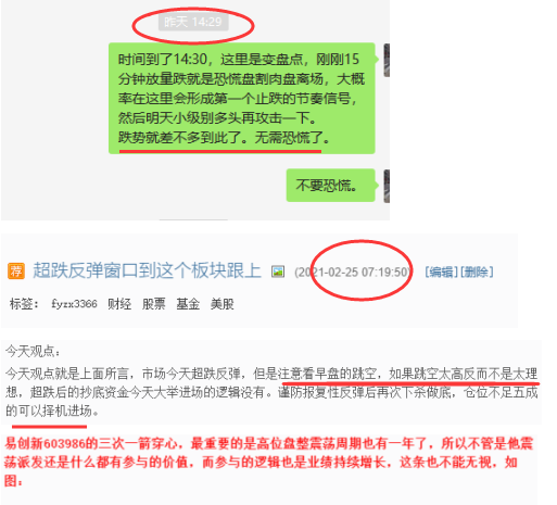 看看下面的截图,图片上半部分是昨天放量下跌在14:29分我提醒一些安耐不住要止损割肉离场的朋友,跌到这里差不多了无需恐慌、不要恐慌!!