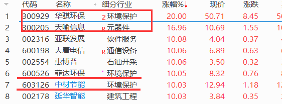 所以在昨天上涨的时候我强调千万不要追涨、千万要轻仓、而上周重点关注的碳中和概念、环保概念依旧多只名列榜首,如图: