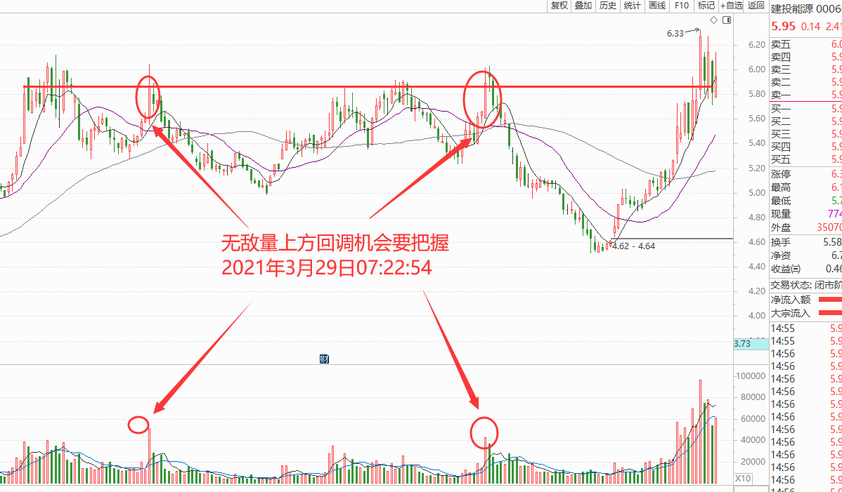 技术形态和业绩上太阳能、甘肃电投、国电电力、宝新能源、建设能源已经站上了无敌量上方,可重点关注回调的机会,如图: