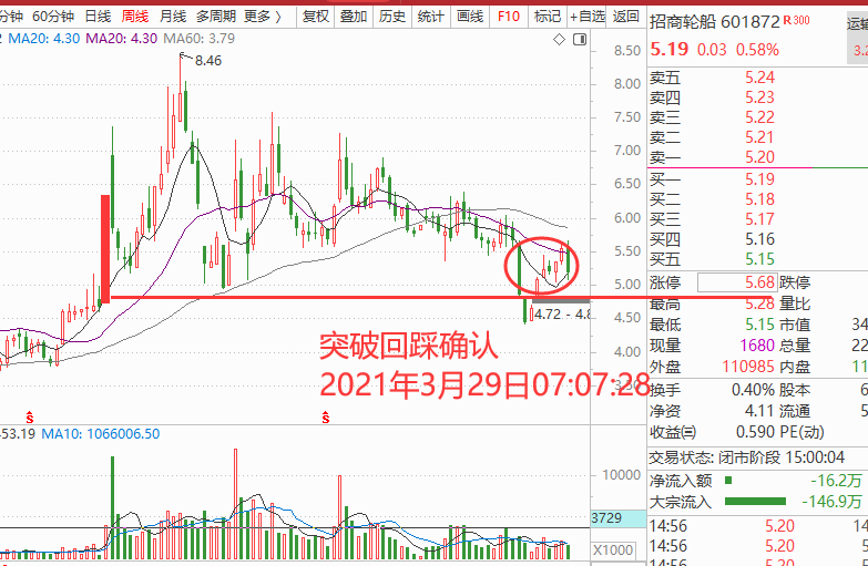 水运的海峡股份、宁波海运、龙洲股份、中远海发是海运相关的公司,而招商轮船更是业绩优秀,技术图形是底部V型翻转结构,野百合的春天来了,如图: