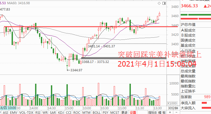 果然上午在第二个事务分钟已经拿下了早盘的高点并且继续上攻刺探缺口的压力,缺口虽然没有拿下但是也是仅仅剩下不到1个点的距离,可以说是胜利在望了,下午如愿以偿缺口完美回补,这标志着多头进攻再下一城,如图: