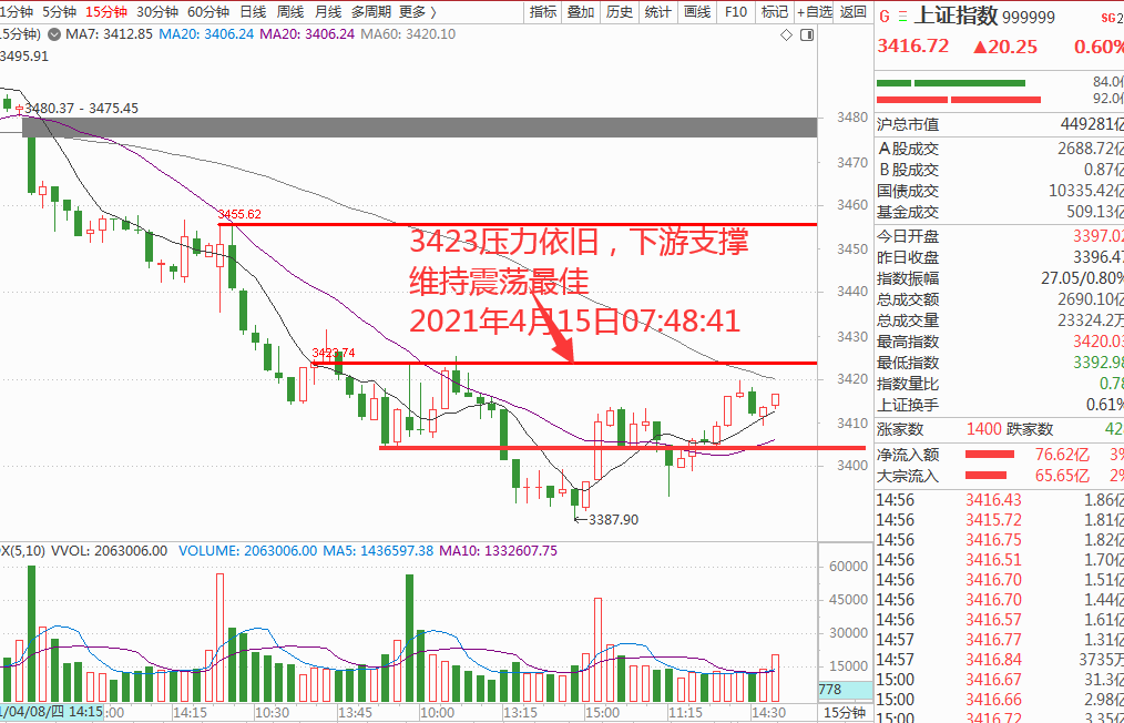 怎么的就是不自信了,因为你不信任你手中的持股这是最小层面的,其次是你对市场上行的不自信,觉得市场不会这样涨,最后是短线持股的不自信,很多机构私A募资金是帮别人理财,回撤过大就要清盘的,所以他们不能回撤,那么避免回撤的操作上有这么个时间段,就是周四周五,因为周四周五之后就是双休日,外围市场或者国内市场出现了大的利空消息的时候周一跳空低开对于大资金来说是很受伤的,也是无法控制的,所以就会出现了开文说的黑色周末,因此大家要引以为戒,到了这个时间节点要轻仓操作、按照计划操作,更何况昨天的3423点还压力依旧存在,如图: