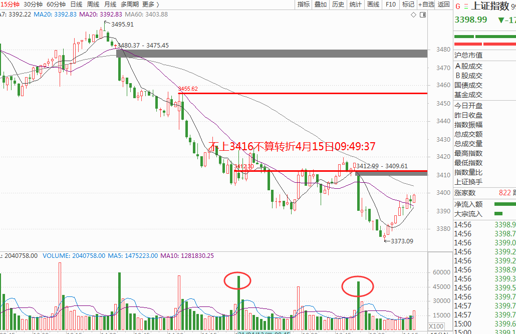 最后3分钟要达到150亿有难度,这样就是一个真阳假阴线,他的意义是:今天多数人看多,所以早盘集中上攻,结果又资金犹豫不决,没有主动进攻,所以出现冲高小幅回落,这样的结构今天大概率,在夹板区间震荡。