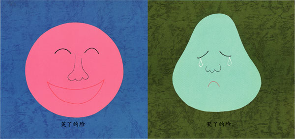 我们曾经拿着这本书给不同的孩子看。一位家长告诉我们,他家13个月的孩子不可思议的喜欢这本书,喜欢指着书中哭泣的表情说“哭,哭”。
