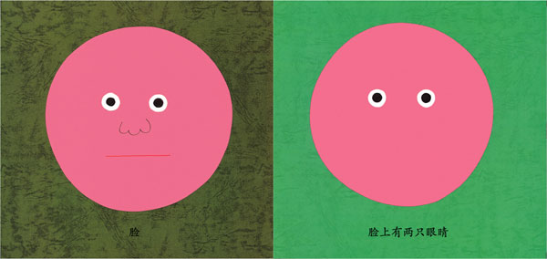 和孩子一起看《脸,脸,各种各样的脸》时,成人无须一字一句严格按照书上的文字,也不必依照顺序一幅幅急着向后翻。可以随着婴儿的视线,一起看他感兴趣的地方。