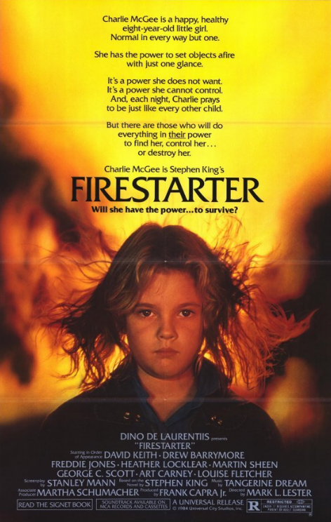 本片由著名作家斯蒂芬·金的畅销小说改编,马克·L·莱斯特执导,1984年出品,片名Firestarter,译名凶火/势如破竹。本片的导演最初选定为约翰·卡朋特。据卡朋特说,Universal制片公司的高层出于票房考虑将其安排去拍摄《怪形》。现在想想,如果是卡朋特执导这部《凶火》,不说成为经典,起码也是别有一番风味。