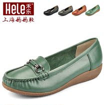 禾乐妈妈鞋 加大码真皮中老年女鞋 软底坡跟防滑单鞋头层牛皮包邮