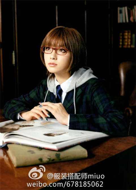 下图中的妹子,如果能把粉色的框镜,换成黑色或者玳瑁色的大框镜,或许就没那么“无趣的乖乖好学生”的感觉了。
