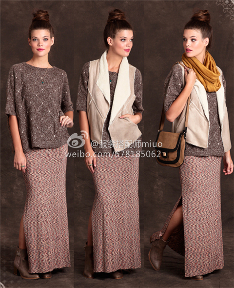 另外,像下图中这种线条流畅的一步裙、铅笔裙,也是可以在层次感搭配中穿的,只是对身高有所要求,个子矮的人穿可能就效果不佳了。