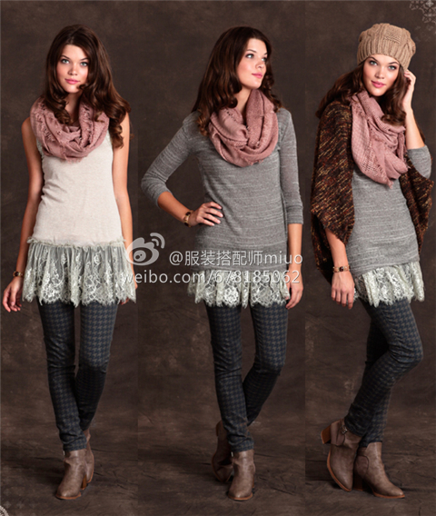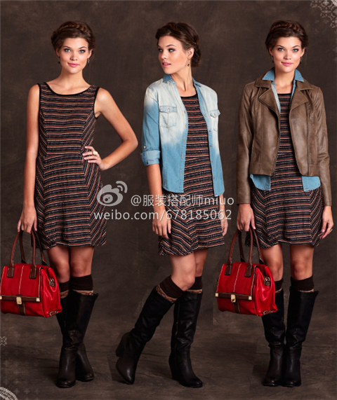 在尝试叠穿法时,下半身要展露腿部线条,要么光腿、要么穿连裤袜或紧身的九分裤或八分裤,如果秋冬季时怕冷,那可以选择长靴、过膝靴。