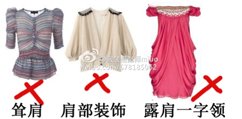 因为这两种身材的人,一旦胖了,手臂根部就容易堆积脂肪,而上臂粗了,肩部也会在视觉上增宽,因此,如她们胖了,就很容易变成草莓型身材。
