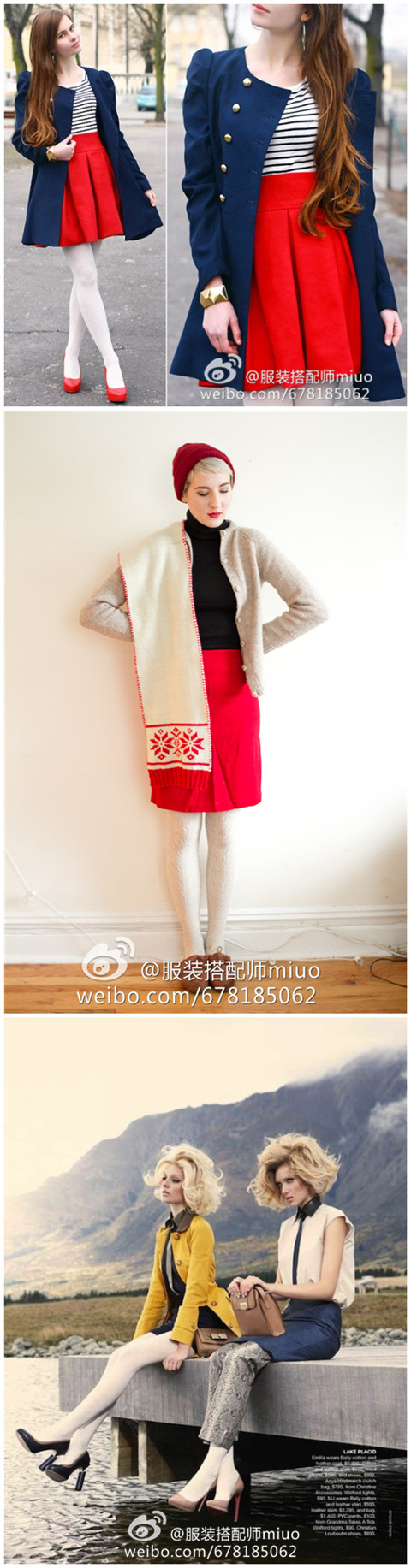 还有一些其他颜色的连裤袜,就不再一个个解说了。拿下面这张图给大家举例子,教大家如何搭配其他各种颜色的连裤袜一一“色彩呼应法”!