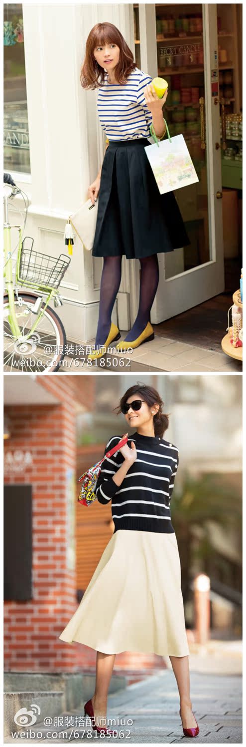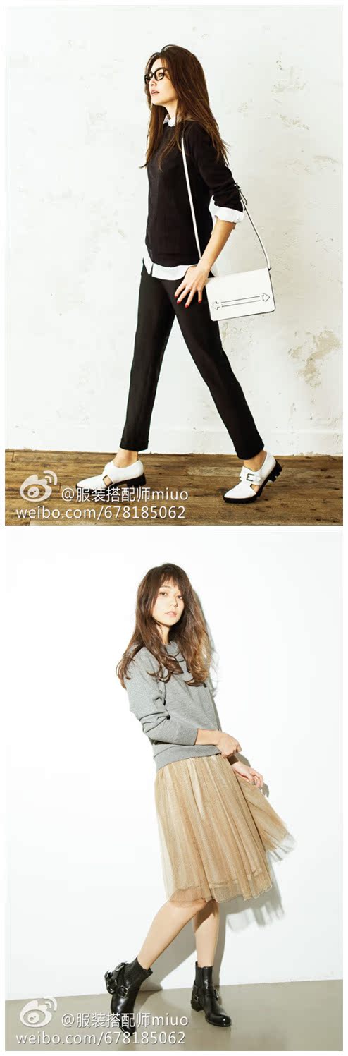 3】类似的上衣+下着,会因为所搭配的鞋子、包包、发型不同,而呈现出全然不同的感觉。鞋子的作用尤其重要。