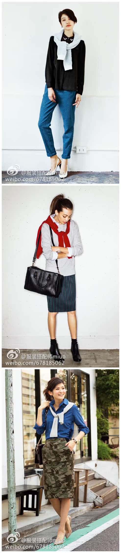 6】一些衬衫、针织开衫,不仅是可以用来“穿”,还可以用来“披”好“戴”,就比如把针织衫搭在肩头做装饰。其实还可以扎在腰间做装饰。