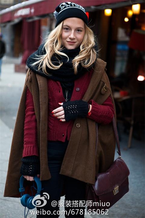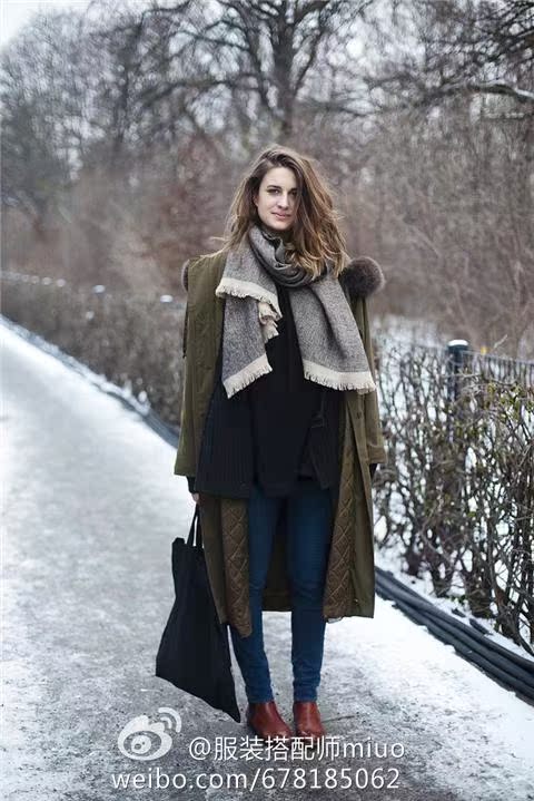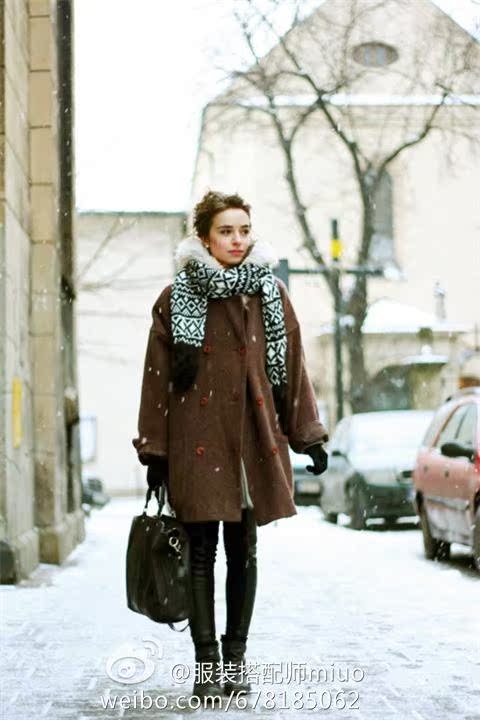 把衣服、围巾一件件一层层往身上套,不仅保暖还非常有层次感。