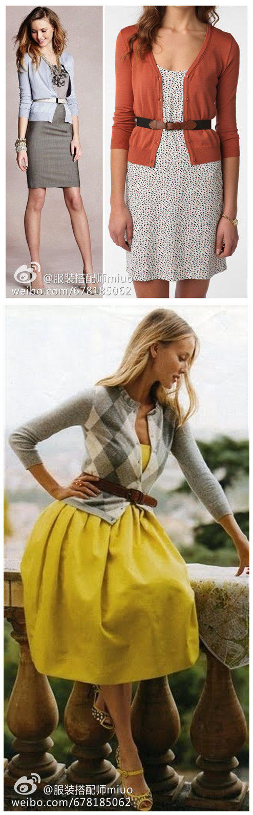 同样也是为了定位明确腰线,你也可以把腰带像下面这样,系在针织开衫的外面。