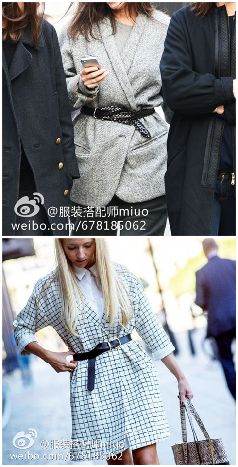 腰带的作用,我以前写过很多了,今天就来说说腰带一个很容易被人忽略的用法——把腰带系在开衫、大衣、围巾等外面!把腰带系在外面,除了明确定位腰线外,还会显得很有范。