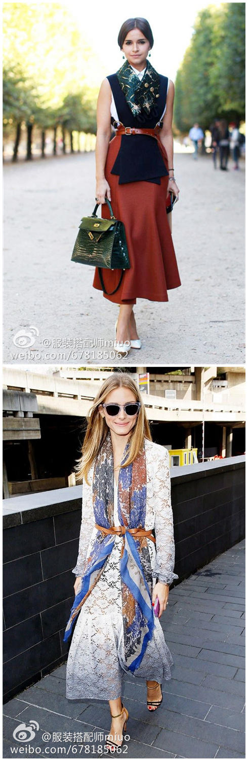 还可以把围巾挂脖子上,然后在用腰带,把围巾系在腰上,也是很有范儿的搭配!