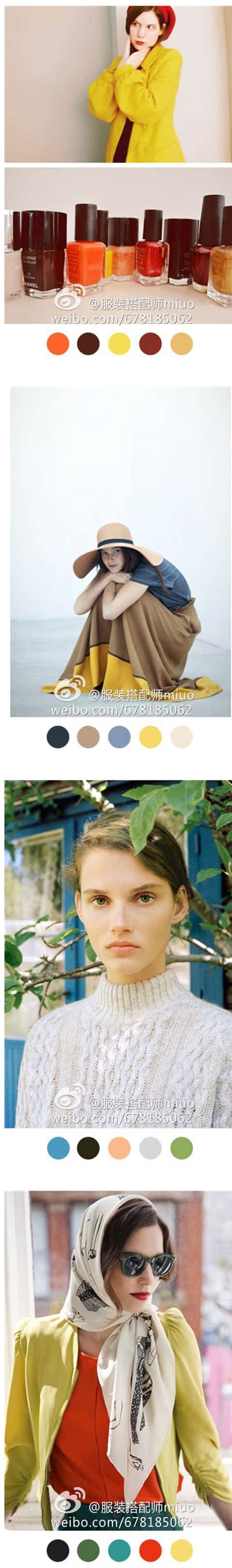 大家可以看下我今天分享的图片,下方或者旁边,都带有从图片中提取的颜色。这些颜色就可以作为你日常穿搭中的配色,这样简洁明了,你也不用花尽心思去联想了。