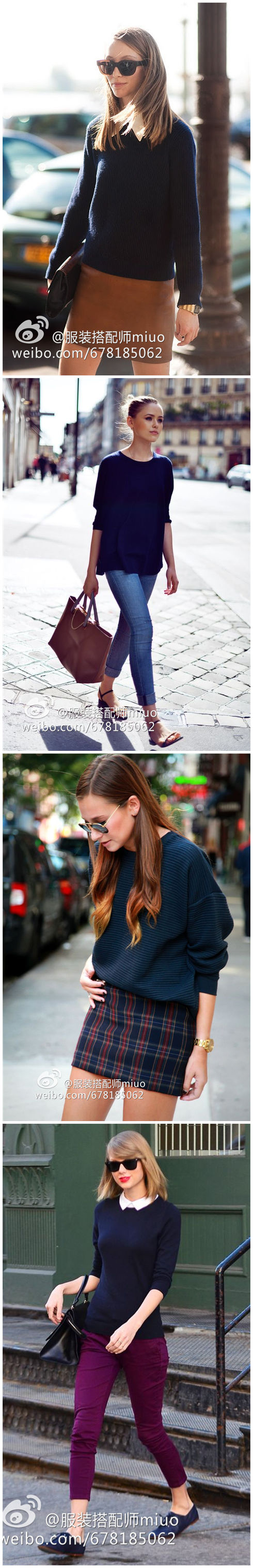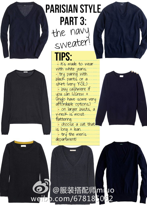 随便圆领还是V领、修身还是宽松。想成为范儿,你的衣橱里一定要有件纯藏蓝色的针织衫。