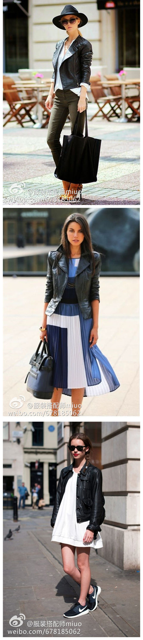 大胆地用皮衣搭配性感的蕾丝、甜美的雪纺、优雅的伞裙...这种帅性与女性气息的组合,会令你得到意想不到的效果。