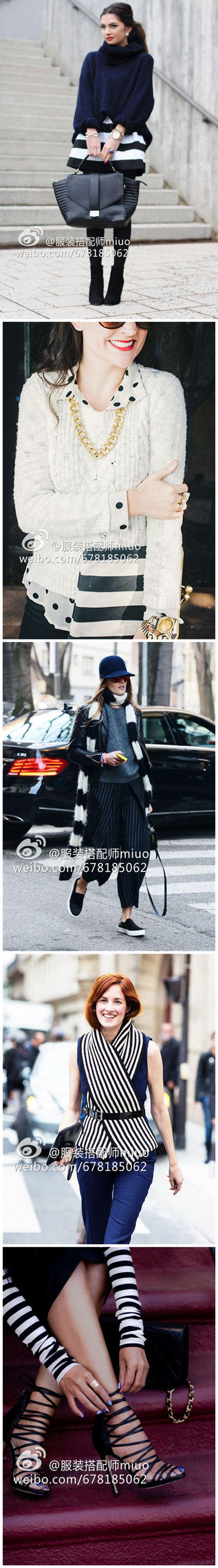白色+黑色一一注意了,之所以和大家说这个,是因为想让大家了解到:白色、藏蓝、黑色等,都是中性基础色,而由中性基础色组成的条纹(或其他图案),都是非常非常百搭的,甚至比纯色还百搭!