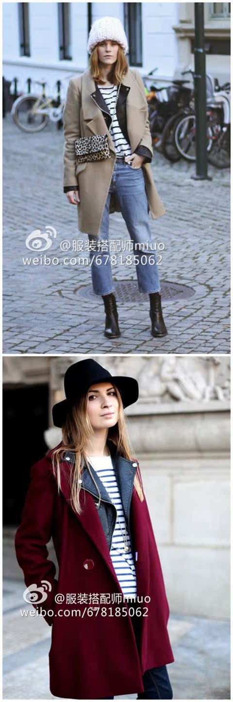 经常有童鞋跟我抱怨说:黑色小西装、小皮衣、深色的毛呢大衣好显老气,该怎么搭能看起来年轻点?答案是:你可以试试内搭条纹衫!