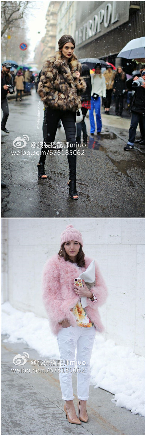 皮草、oversize外套,需要遵循“上宽下紧”的搭配法则。范儿们本身就身材修长,所以没什么压力,但是如果是普通身材的人想这么穿,那么就得好好注意腿部的利落感、最好搭配高跟鞋来直接增加腿部的长度。
