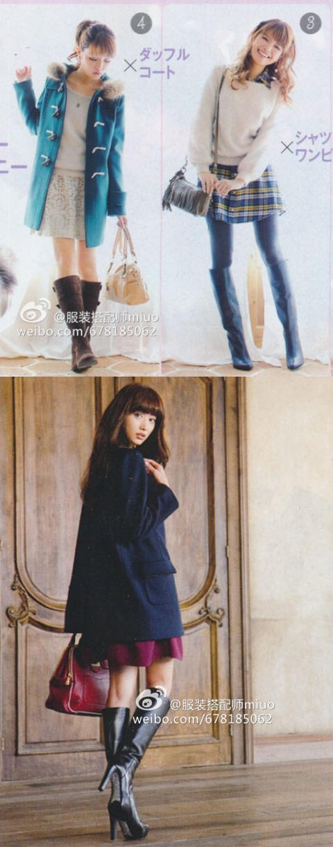 日系搭配中,夏季总是连衣裙+高跟鞋,秋冬季则是裙装+长靴。