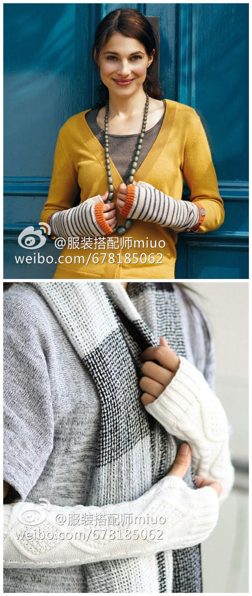 当然手套也不是那种中规中矩的五指款,现在也很流行下面这种套指手套。方便干活、写字,内搭在里面,别人还以为是一截袖子呢~~